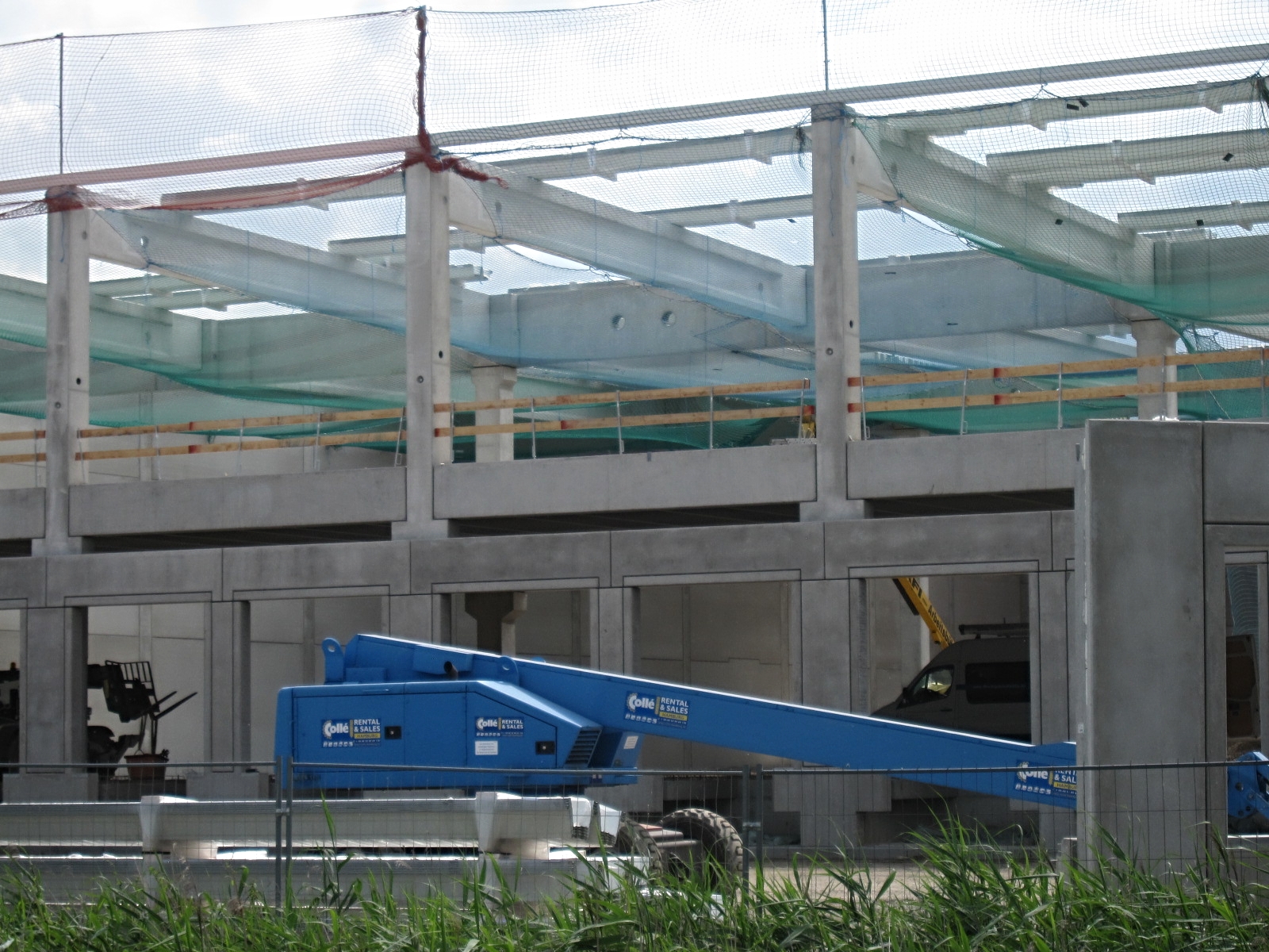 Konstruktion: Skelettbau aus Stahlbetonfertigteilen